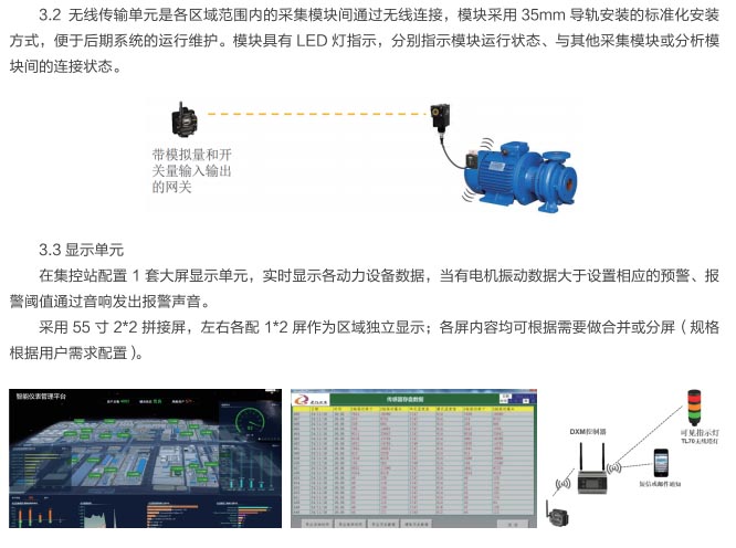 動(dòng)力設(shè)備集群智能在線監(jiān)測(cè)系統(tǒng)是通過(guò)智能遠(yuǎn)程運(yùn)維系統(tǒng)(RMS)完成工業(yè)生產(chǎn)線的電機(jī)、減速機(jī)、風(fēng)機(jī)、高低壓變電、泵閥等設(shè)備運(yùn)行狀態(tài)信息及故障信息檢測(cè),通過(guò)檢測(cè)設(shè)備的溫度、震動(dòng)、轉(zhuǎn)速、電流、電壓等數(shù)據(jù)實(shí)時(shí)分析處理運(yùn)行設(shè)備狀況,同時(shí)通過(guò)信息報(bào)警推送,智能分析設(shè)備運(yùn)行狀況并實(shí)時(shí)報(bào)警等功能,能迅速找到解決問(wèn)題的方法。通過(guò)在線檢測(cè)系統(tǒng)全面實(shí)現(xiàn)對(duì)關(guān)鍵設(shè)備的全生命周期管理,提高了設(shè)備有效運(yùn)維時(shí)間和效率,降低設(shè)備運(yùn)維成本,降低設(shè)備故障時(shí)間,減少現(xiàn)場(chǎng)人員維護(hù)量,降低維護(hù)人員的依賴(lài)性。